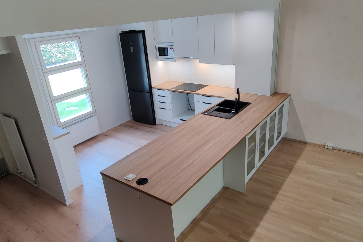 "Pieteetti Oy teki meille keittiöremontin Kruunuhaassa. Olimme itse reissussa ja saimme päivittäin kuvat ja kuvauksen siitä, mitä työmaalla oli tapahtunut.