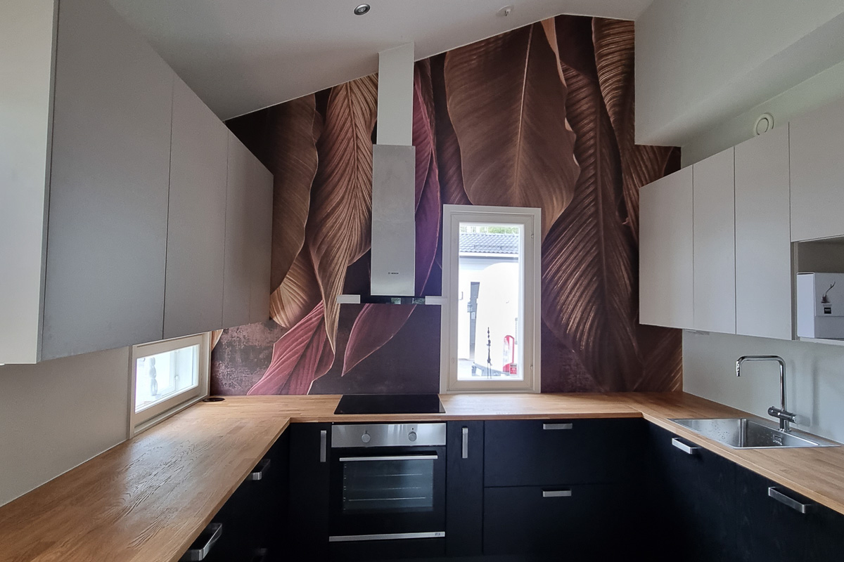 Asunnossa maalattiin kaikkien huoneiden katot, muutama seinä tapetoitiin ja loput maalattiin. Yhteydenpito tapettien ja maalien valitsemisessa ja hankinnassa oli vaivatonta. Työn jälki on hyvää ja lopputulos kerta kaikkiaan hieno. Voin suositella muillekin